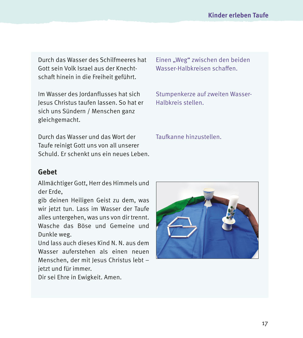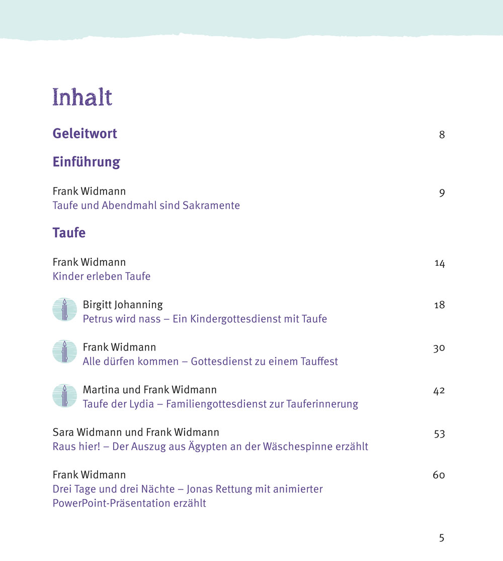 Tipp: Die spannenden Erzählungen der biblischen Geschichten lassen sich auch über einen Gottesdienst hinaus einsetzen, um mit Kindern Taufe und Abendmahl zu feiern (z. B. im Religionsunterricht oder in der religionspädagogischen Arbeit in Kindertagestätten).