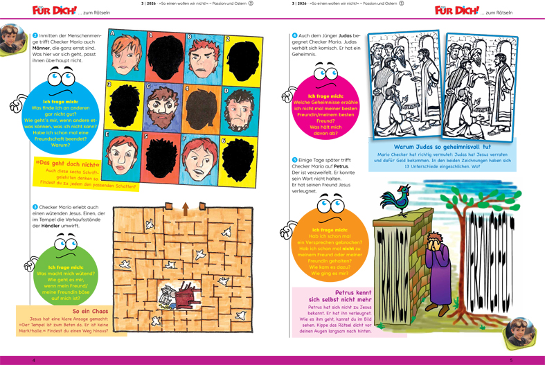 - Mit Checker Mario und seiner Zeitmaschine gelingt es uns, nach Jerusalem zu kommen. Dort erleben wir nicht nur konzentriert die Ereignisse dieser Woche, sondern werden durch Aktionen, Rätsel und Nachdenken persönlich mit hineingenommen