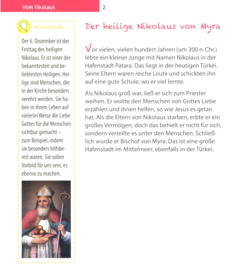 Die schönsten Geschichten und Legenden rund um den heiligen Nikolaus sind in diesem Buch kindgerecht nacherzählt. Darüber hinaus bietet es Wissenswertes über diesen beliebten Heiligen und einfallsreiche Ideen, um den Nikolaustag am 6. Dezember kreativ zu gestalten.