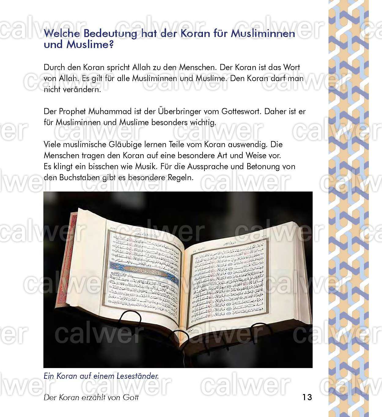 Ein interreligiöses Lesebuch, das Gemeinsamkeiten der beiden Heiligen Schriften hervorhebt. In übersichtlicher Darstellung bietet es Überlieferungen aus Bibel und Koran, wie sie in den Lehrplänen für allgemeinbildende Schulen vorgegeben sind. Es kann sowohl im christlichen als auch im islamischen Religionsunterricht eingesetzt werden. Die Nacherzählungen orientieren sich an den Regeln der Einfachen Sprache und erleichtern auch leseschwächeren Schüler/innen einen eigenständigen Zugang.